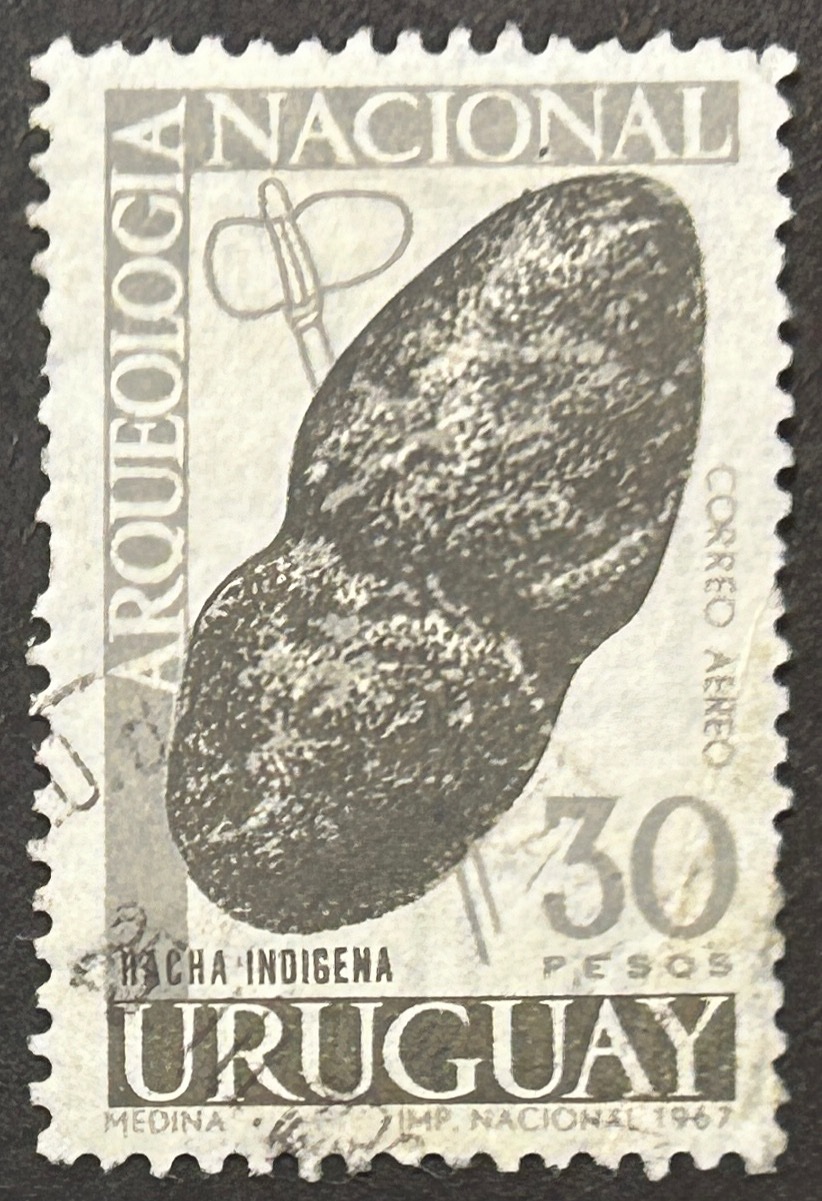 Sello Uruguay 1967 – Arqueología Hacha – 30$ Negro