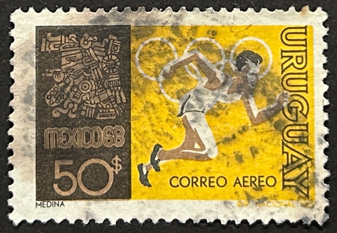 Sello Uruguay 1969 – OLIMPIADAS México – 50$ – Amarillo y Negro