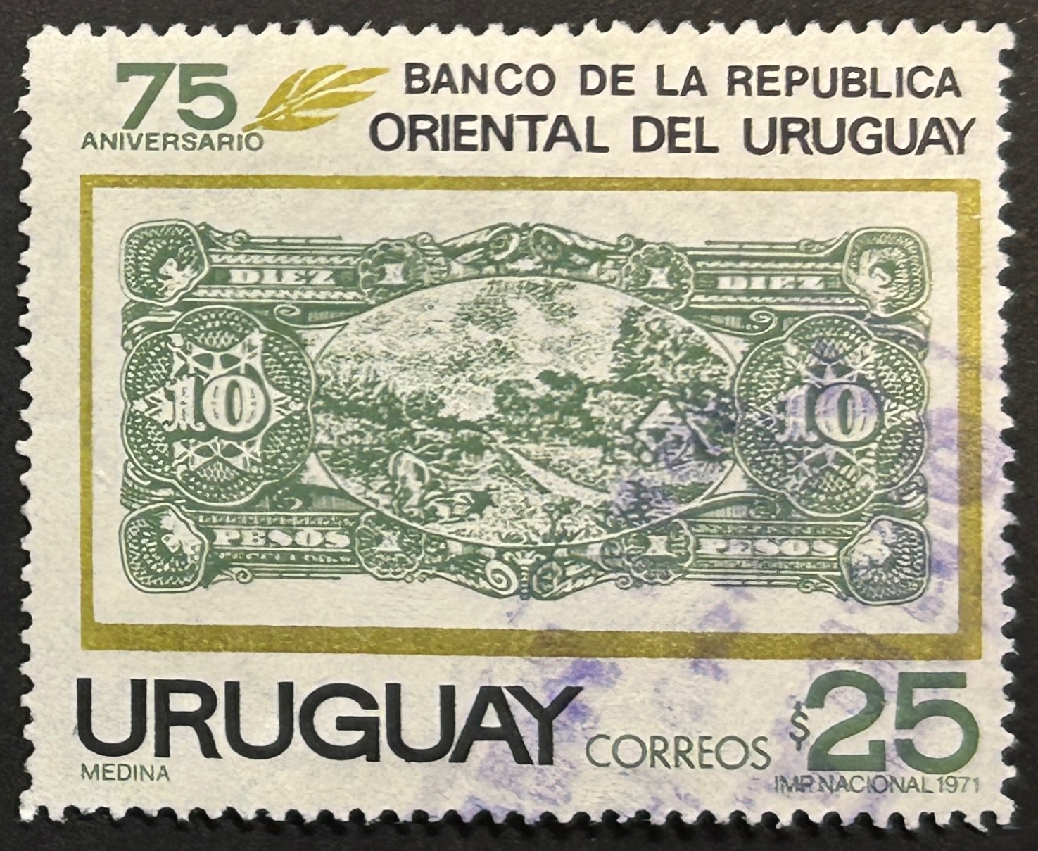 Sello Uruguay 1971 – Aniversario banco de la república- 25 Pesos, usado