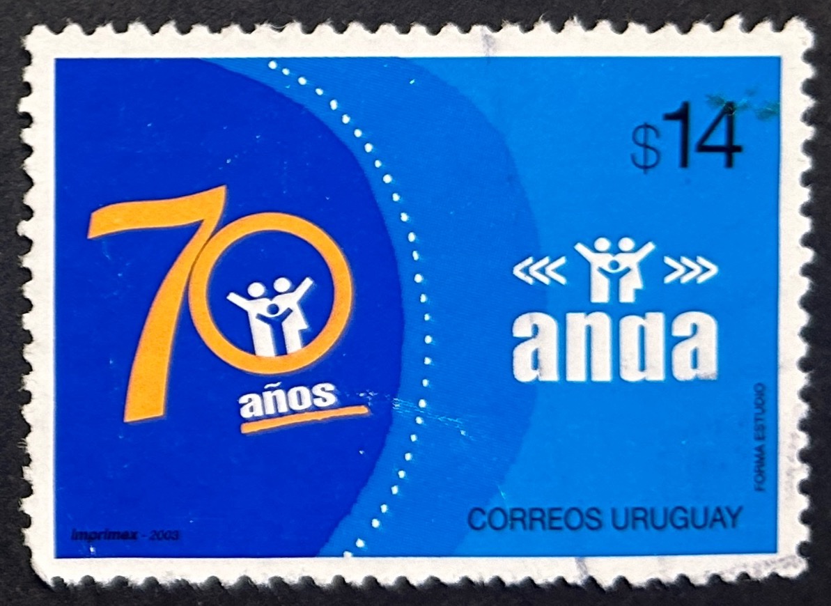 Sello Uruguay 2003 – 70 Años ANDA – 14$ usado
