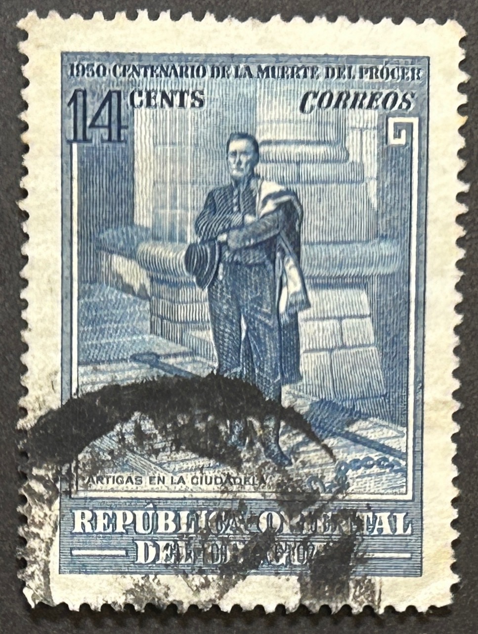 Sello Uruguay 1952 – Artigas en la Ciudadela – 14c Azul