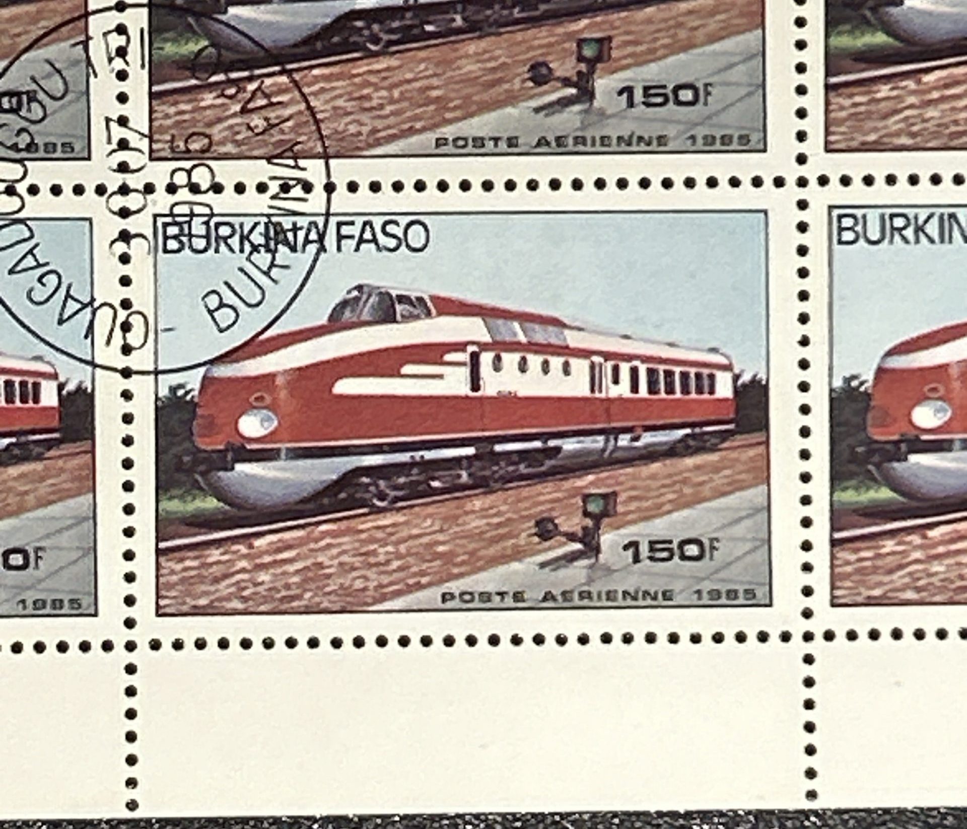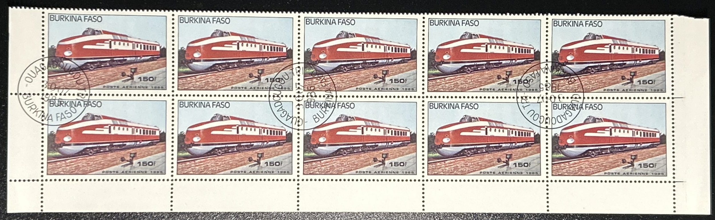 Semipliego Burkina Faso 1985 – Trenes – 150F Poste Aerienne – 10 Valores