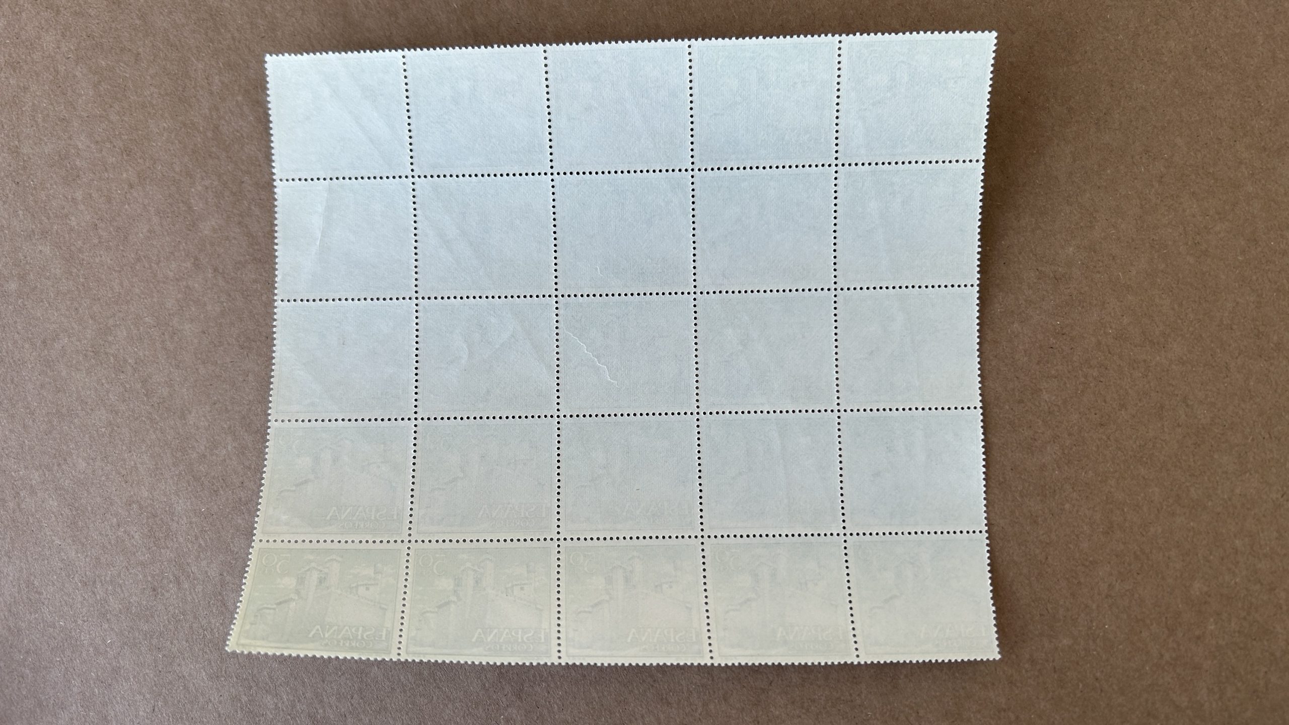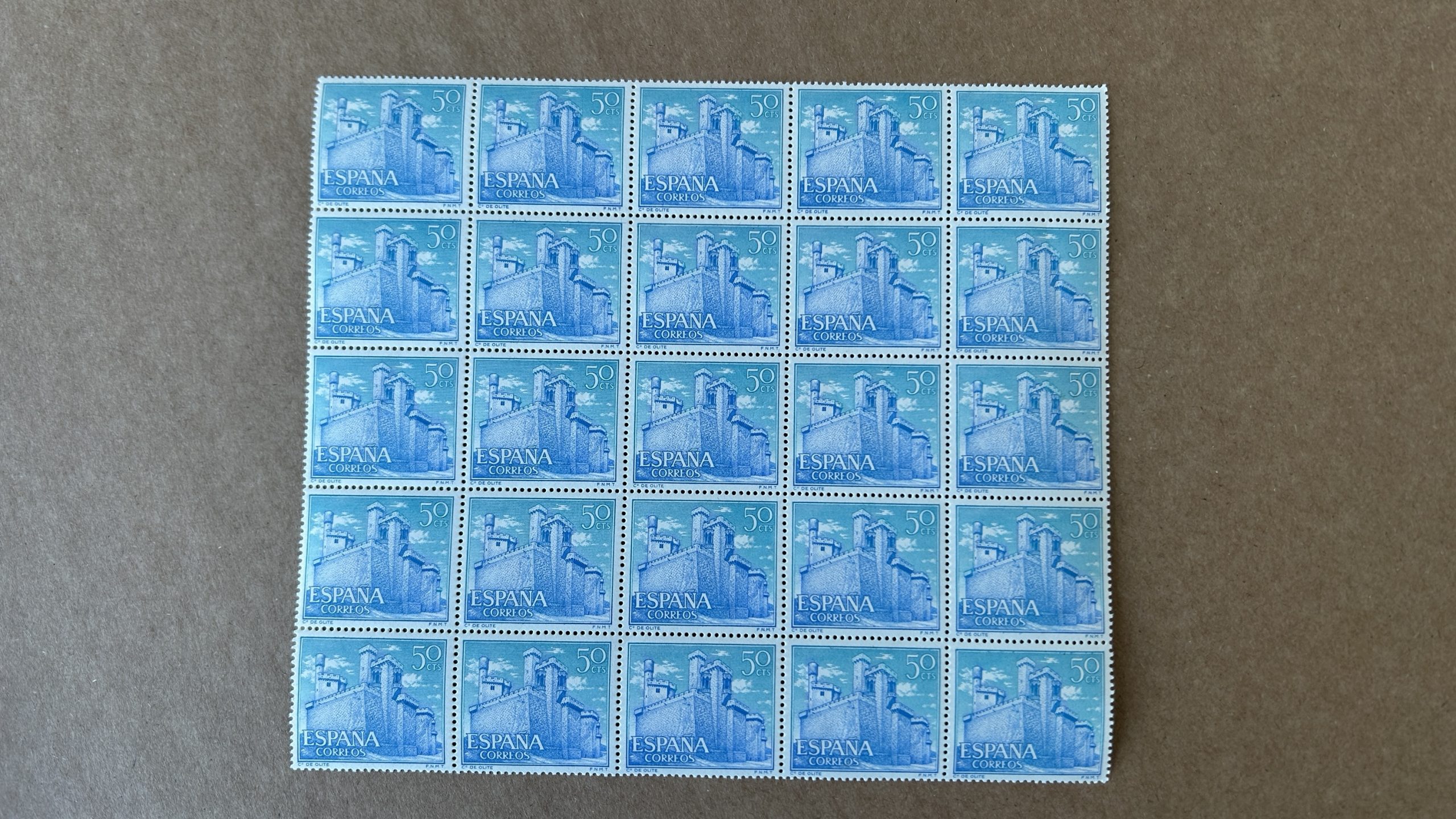 Semipliego de sellos de correo ordinario de la serie castillos de 1966, lado superior