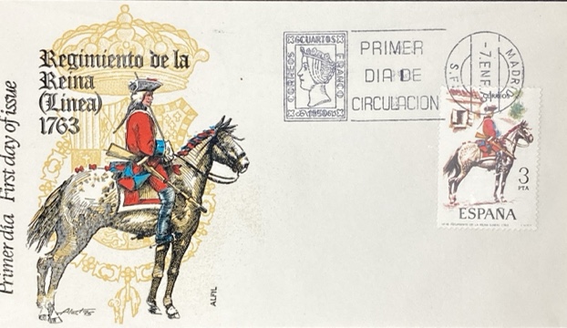 Sobre Primer Dia España 1975 – Uniformes – Regimiento de la Reina (Línea) 1763